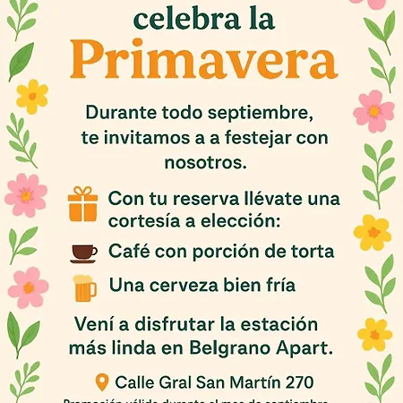 The accommodation offers a living room, as well as comforts like air conditioning and a washing machine. At Belgrano Apart apartment, guests will enjoy the convenience of bath sheets in the bathroom. Furthermore, a bidet and a shower is available.